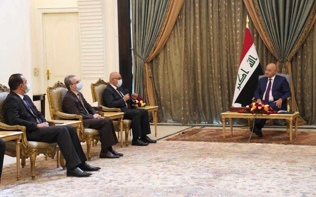 استقبل السيد رئيس الجمهورية الدكتور برهم صالح، اليوم الاثنين 2 تشرين الثاني 2020 في قصر السلام ببغداد، وفداً موسعاً ضم وزير التعليم العالي والبحث العلمي نبيل كاظم عبد الصاحب، ووكيل الوزارة للشؤون العلمية، ونقيب الاكاديميين ورئيس جهاز الاشراف والتقويم، ورؤساء جامعات بغداد والمستنصرية وابن سينا، والكادر المتقدم في وزارة التعليم العالي.وفي مستهل اللقاء، أكد رئيس الجمهورية على ضرورة الحفاظ على رصانة التعليم الاكاديمي، وضمان حماية الاستقلالية العلمية للجامعات، والاهتمام باحتياجات الاساتذة والطلبة وتذليل العقبات والمشاكل امامهم، لدورهم المهم في الارتقاء بالمستوى العلمي والثقافي في مختلف الاختصاصات العلمية والثقافية.وأضاف سيادته أن الجامعات العراقية طالما اكتسبت سمعة طيبة في المحافل الدولية، رغم المصاعب التي واجهتها في الفترات السابقة، داعيا الى فتح أبواب التعاون والتنسيق مع الجامعات العالمية والاستفادة من الخبرات الدولية في هذا الخصوص، من أجل أن تكون الجامعات العراقية في مصاف أقرانها في دول العالم.واستمع سيادته باهتمام الى شرح مفصل من أعضاء الوفد لسير عمل الجامعات والتدريس الاكاديمي، والتحديات التي تواجه قطاع التعليم في البلد، كما استمع فخامته للإشكاليات القانونية المسجلة على قانون معادلة الشهادات والدرجات العلمية، مؤكدا دعمه لكل ما من شانه الارتقاء بعمل الجامعات وتذليل المصاعب التي تواجه الاكاديميين والتدريسيين والطلبة.وفي نهاية اللقاء، قدم أعضاء الوفد شكرهم وتقديرهم لرئيس الجمهورية، واستماع سيادته لسير عمل الجامعات والمسائل التي تواجههم، ودعمه الكامل في تذليلها من اجل الارتقاء بالقطاع التعليمي.المكتب الإعلامي لرئاسة الجمهورية