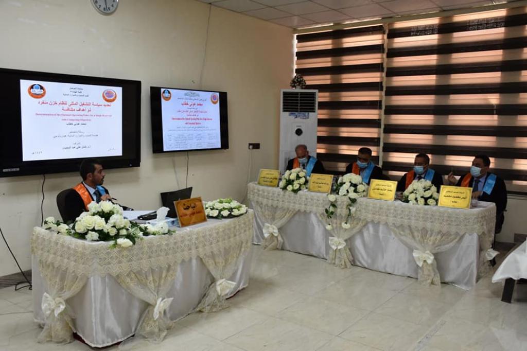 رئيس جامعة الموصل يحضر جانبا من جلسة مناقشة رسالة ماجستير عن التشغيل الامثل للسدود المائية في كلية الهندسة