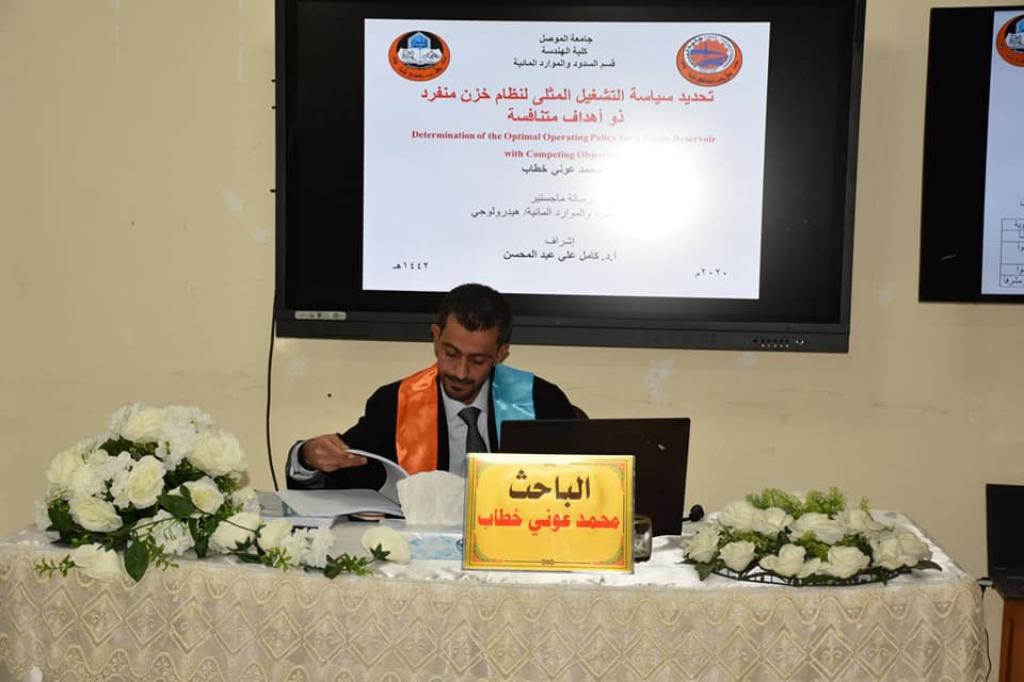حضر السيد رئيس جامعة الموصل الاستاذ الدكتور قصي كمال الدين الاحمدي جانبا من جلسة مناقشة رسالة ماجستير في قسم هندسة السدود والموارد المائية بكلية الهندسة الموسومة (تحديد سياسة التشغيل المثلى لنظام خزن منفرد ذو اهداف متنافسة ) ، والتي جرت صباح يوم الاربعاء الموافق 11 تشرين الثاني 2020 .