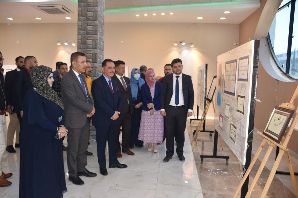 رئيس جامعة الموصل يفتتح معرضا للخط والزخرفة في كلية العلوم الاسلامية