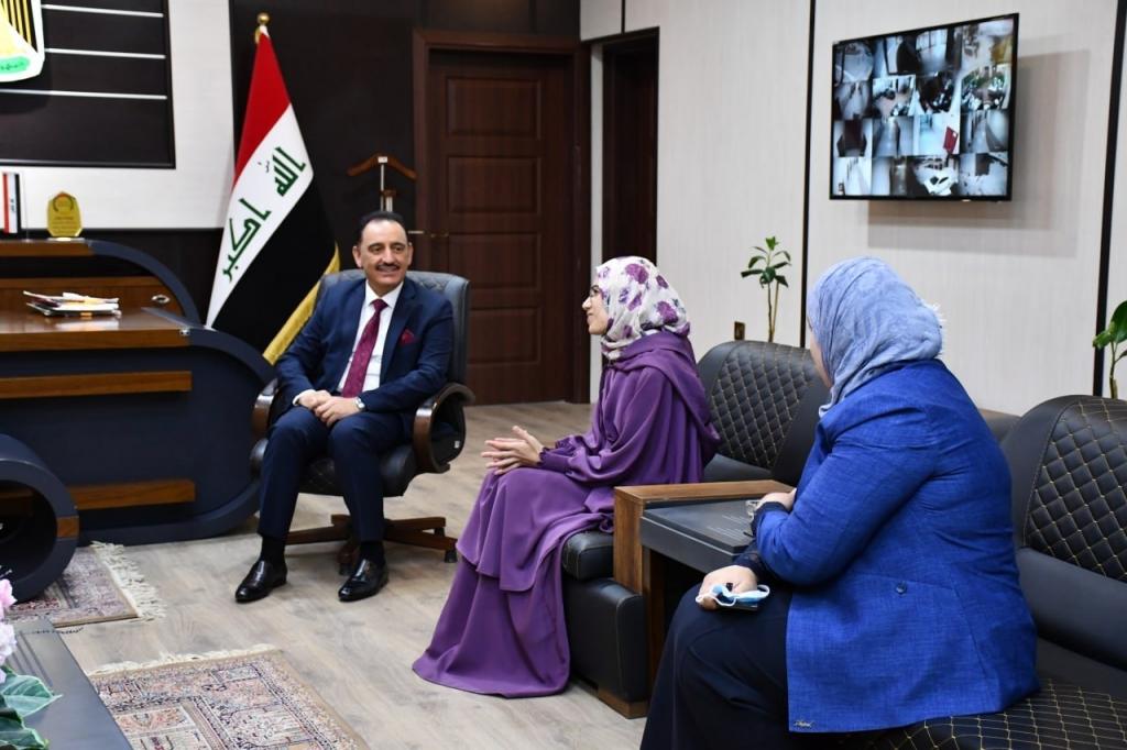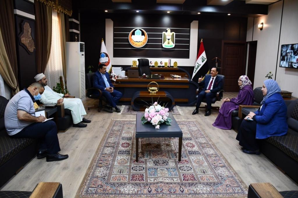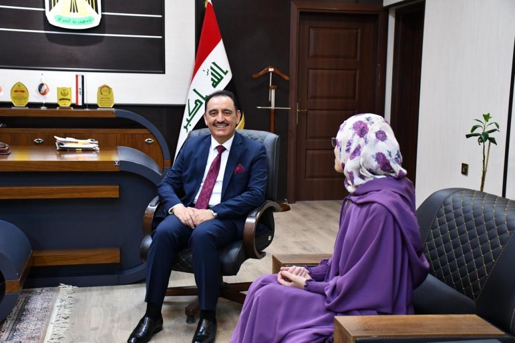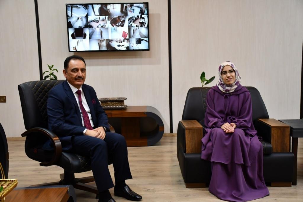 رئيس جامعة الموصل يلتقي الطالبة الفائزة بالمرتبة الاولى في مسابقة ام الربيعين للقرآن الكريم