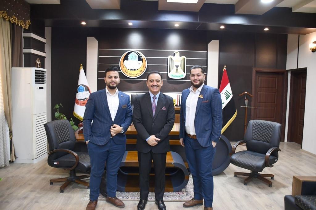رئيس جامعة الموصل يلتقي بطالبين مبدعين من كلية الهندسة
