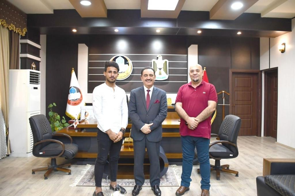 رئيس جامعة الموصل يلتقي طالباً مبدعأ من كلية التربية للعلوم الانسانية