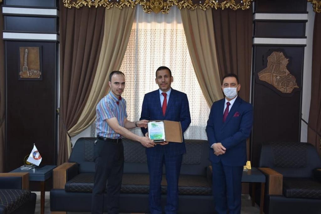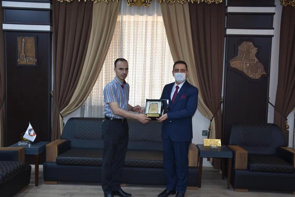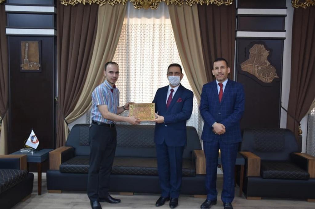 رئيس جامعة الموصل يلتقي طالب الدراسات العليا الفائز بالمرتبة الثانية بتلاوة القران الكريم في مسابقة التحبير للقرآن الكريم الدولية
