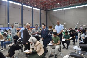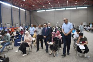 متجولاً فيها، ومطلعاً على الأسئلة الامتحانية والأجواء المتوفرة فيها، مؤكداً حرص الجامعة على تكريس جهودها في سبيل انجاحها وتحقيق الهدف بالنجاح والتفوق خدمة لها وللمجتمع. متمنياً لهم التوفيق والسداد.