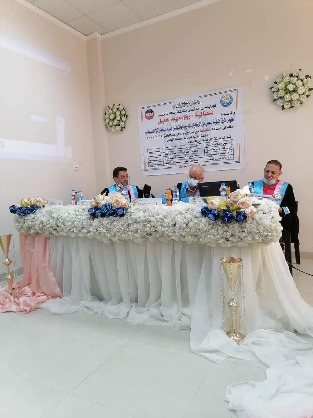 ترأس لجنة المناقشة الاستاذ الدكتور نبيل صبيح عثمان ، وعضوية كل من(ا.م.د. خالد وليد صالح، ا.م.د. محمد سالم شيت، ا.م.د داود حبو محمد / عضواً ومشرفاً)