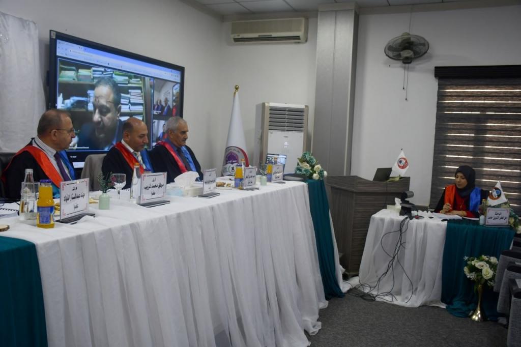 ترأس لجنة المناقشة الأستاذ الدكتور فوزي حبيب جبرائيل وعضوية كلاً من الأستاذ الدكتور موفق محمد غريب من جامعة بغداد والمدرس الدكتور مهند عبد الستار الفهاد وبإشراف وعضوية كلاً من الأستاذ الدكتور فارس ذنون حامد العباجي والأستاذ المساعد الدكتور ميسر محمد علي القوطجي.