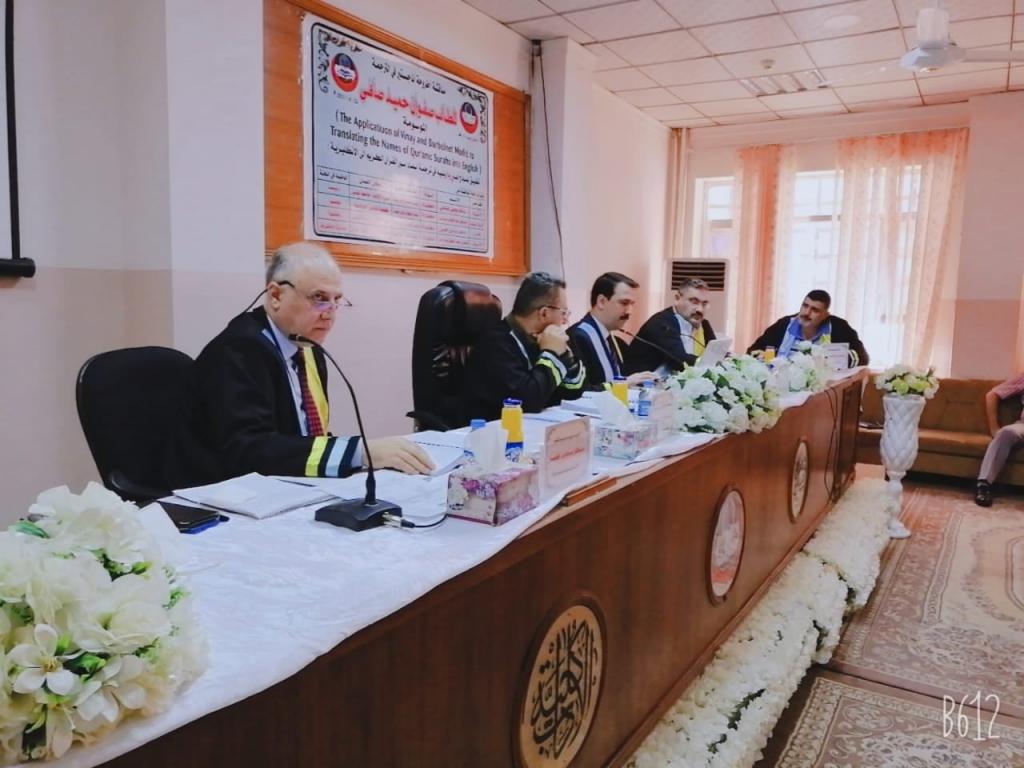 ناقشت كلية الآداب في جامعة الموصل رسالة ماجستير عن ”تطبيق نموذج فيني و داربلنيه في ترجمة أسماء سور القرآن الكريم إلى الإنكليزية“ “The Application of Vinay and Darbelnet Model to Translating the Names of Quranic Surahs into English” ، يوم الاثنين 23 آب 2021 في قاعة الكلية.