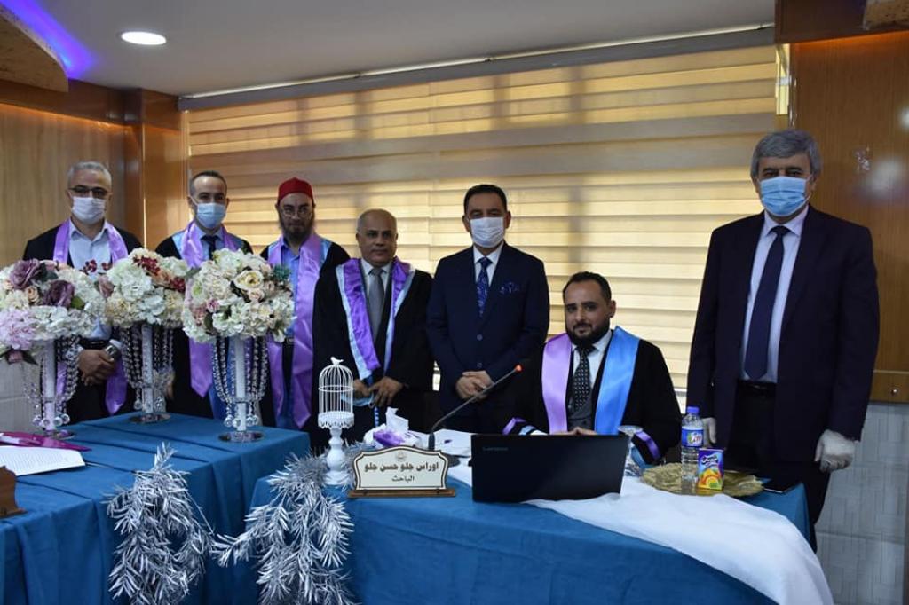 ترأس لجنة المناقشة الاستاذ الدكتور زياد هاشم يحيى وعضوية كل من الاستاذ المساعد الدكتور صدام محمود خطاب / جامعة تكريت والاستاذ المساعد الدكتور بلال احمد الصائغ والاستاذ المساعد الدكتور سنان زهير محمد جميل عضواً ومشرفا. .
