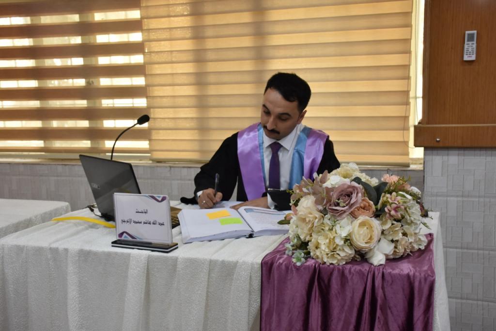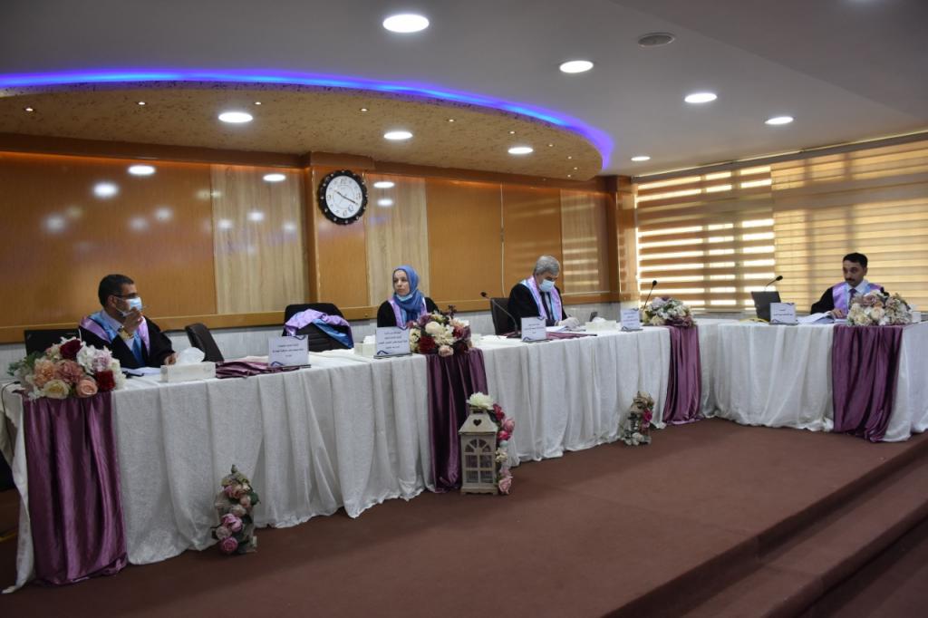 ترأس لجنة المناقشة الاستاذ المساعد الدكتور علاء احمد حسن الجبوري وعضوية كل من الاستاذ المساعد الدكتور علي عبد الفتاح محمود الشاهر والاستاذ المساعد الدكتور رغد محمد يحيى خروفة وبإشراف وعضوية ثائر احمد سعدون السمان.