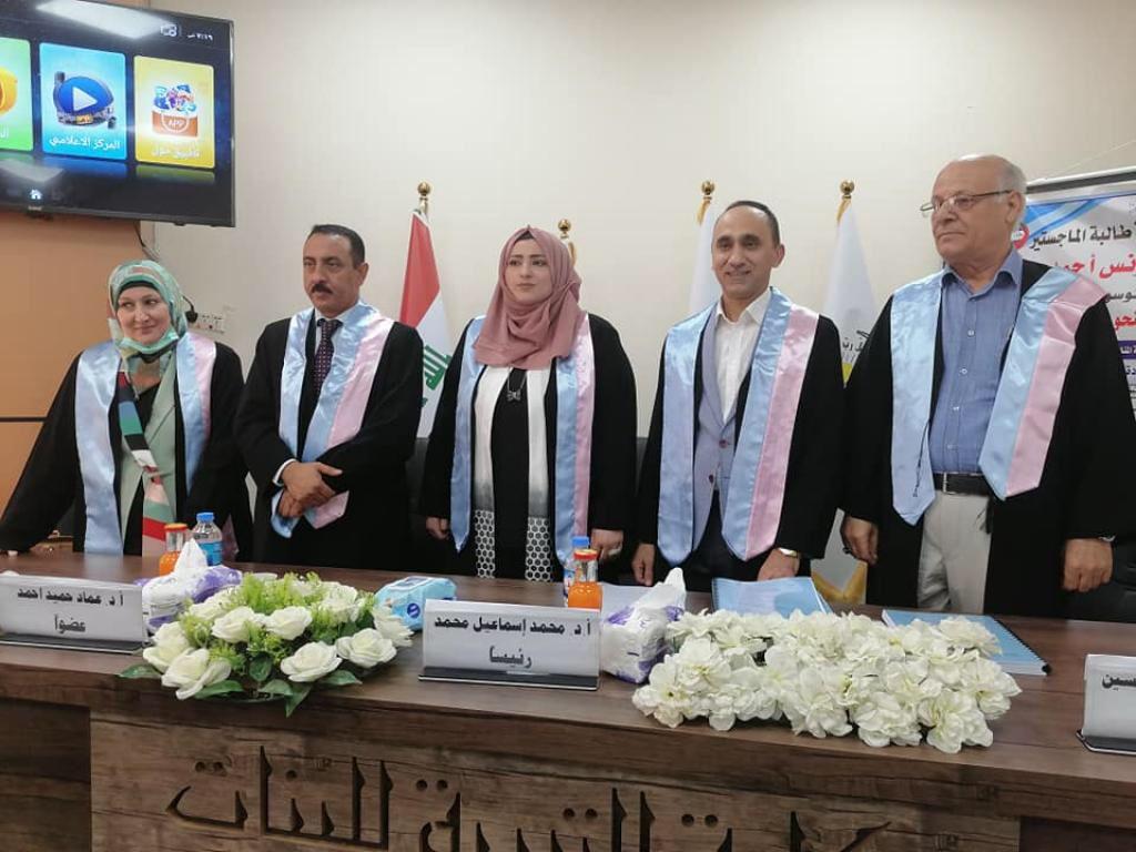 ناقشت كلية التربية للبنات رسالة الماجستير الموسومة (الشاهد النحوي في شرح المغني في النحو للميلاني ت٨١١ للهجرة)، يوم الأحد ٢٦ ايلول ٢٠٢١.تناولت الدراسة التي تقدمت بها الطالبة نضال يحيى يونس أحمد في قسم اللغة العربية أهمية الشاهد في علم النحو وكشف بعض المسائل النحوية من خلال عرض آراء النحويين ومناقشتهم وموقفهم من الاستشهاد من خلال شواهد الميلاني في كتابه (شرح المغني في النحو) .تطرقت الدراسة الى اهمية المصادر التي استند عليها هذا الكتاب من أدلة النحو المعول عليها وهو السماع الذي تمثل في القرآن الكريم اذ حازت الايات القرانية النصيب الاكبر من استشهاداته النحوية والحديث النبوي الشريف والشعرو النثر،وابراز جهد الميلاني في هذا الكتاب واستخدمت المنهج الاستقرائي الوصفي التحليلي.ترأس لجنة المناقشة أ.د. محمد إسماعيل محمد وعضوية كلاً من أ.د. عماد حميد أحمد وأ.م. د. حسن سليمان حسين وعضوية واشراف أ.م.د. هديل عبد الحليم داود .