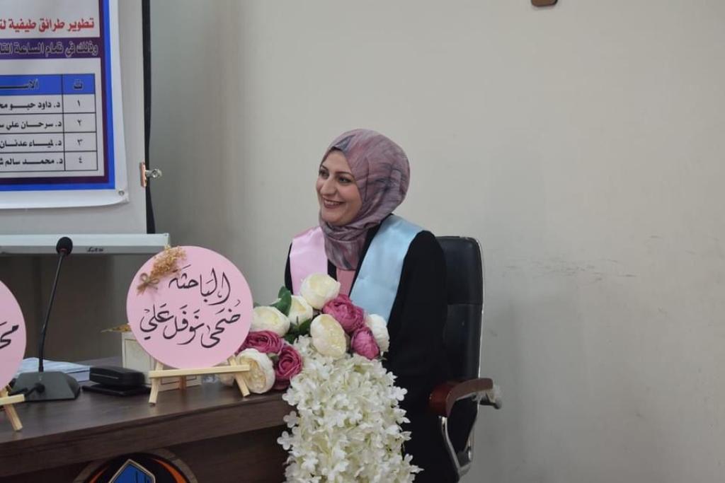 ناقشت كلية التربية للبنات بجامعة الموصل رسالة الماجستير الموسومة ( تطوير طرائق طيفية لتقدير عدد من المركبات العضوية والدوائية وتطبيقها على المستحضرات الصيدلانية ) يوم الثلاثاء 13 ايلول 2022.تناولت الدراسة التي تقدمت بهالطالبة ضحى نوفل علي أحمد مقدمة عامة عن تفاعلات الأزوتة والاقتران وتفاعلات الاقتران التأكسدي وإستعراضاً للطرائق الطيفية المتبعة في تقدير المركبات الفينولية (الفينول،الكاتيكول، الريسورسينول،أورثوأمينوفينول وميتاأمينوفينول) والمركبات الدوائية المدروسة والمتمثلة بالمثيل دوبا والسالبيوتامول والاستخدامات التحليلية للكواشف (البنزدين، 4,2-ثنائي نايترو فنيل هيدرازين ، الإنيلين).تطرقت الدراسة الى التقدير الطيفي لبعض المركبات العضوية بواسطة تفاعل الأزوتة والاقتران باستخدام كاشف البنزدين ،وايضاً التقدير الطيفي للمثيل دوبا بواسطة تفاعل الاقتران التأكسدي باستخدام الكاشف 4،2- ثنائي نايترو فنيل هيدرازين، والتقدير الطيفي للسالبيوتامول بطريقة الأزوتة والاقتران باستخدام كاشف الانيلين.تضمنت الدراسة مبحثين هما : المبحث الأول التقدير الطيفي لمزيج الفينول والريسورسينول باستخدام قانون بير ، والمبحث الثاني التقدير الطيفي لمزيج أورثو وميتا- أميتو فينول باستخدام قانون بير.ترأس لجنة المناقشة الاستاذ الدكتور داود حبو محمد وعضوية كلاً من الاستاذ المساعد الدكتور سرحان علي محمد والاستاذ المساعد الدكتورة لمياء عدنان سرسم وبإشراف وعضوية الاستاذ المساعد الدكتور محمد سالم شيت .