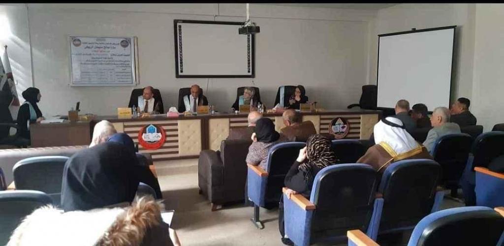 يوم الخميس 10 شباط 2022، حضر جانبا منها السيد عميد الكلية والسيدان المعاون العلمي والمعاون الإداري والسيد رئيس قسم علوم الحياة وعدد من تدريسيي الكلية.تناولت الدراسة التي تقدمت بها الطالبة سارة صالح سليمان في قسم علوم الحياة جمع 25 عينة من الترب المحيطية بجذور النباتات في مدينة الموصل (حاوي يارمجة وحي الطيران في الجانب الأَيمن من المدينة, وحي الزهور في الجانب الايسر من المدينة) للفترة من 1-11الى 25-/12 /2020.تطرقت الدراسة اختبار التأثير التضادي للعزلات البكترية قيد الدراسة بطريقة الانتشار بأَقراص الاكار Agar Diffusion method .أظهرت نتائج الدراسة عدم حدوث أي تأثير تثبيطي لهذه البكتريا ضد الأَنواع البكتيرية المرضية الخمسة Stphylococcus aureus، Stphylococcus haemolyticus, Eschericha coli, Klebsiella pneumoniae و Pseudomonas aeruginosa,تراس لجنة المناقشة الاستاذ الدكتور ابراهيم عبد الكريم عبد الرحمن من جامعة الفلوجة وعضوية كلاً من الأستاذ المساعد الدكتورة ايمان عبد العزيز مصطفى والمدرس الدكتور محمد عبد الاله محمد وبإشراف وعضوية الأستاذ المساعد الدكتورة نجوى إِبراهيم خليل البرهاوي.
