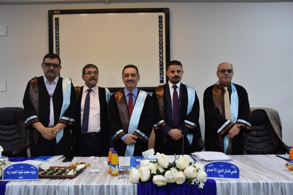 ضمت لجنة المناقشة عضوية كل من الاستاذ الدكتور ضياء نجم عبد الله والاستاذ الدكتور رشيد محمد شيت العبد ربه من جامعة تكريت والاستاذ الدكتور عبد العزيز يونس طليع.