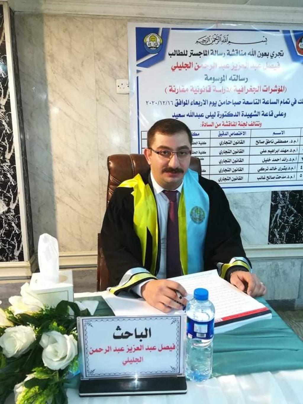 ناقشت كلية الحقوق في جامعة الموصل رسالة ماجستير عن المؤشرات الجغرافية-دراسة قانونية مقارنة، يوم الاربعاء الموافق 16كانون الاول 2020 .
