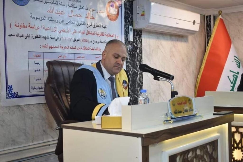 ناقشت كلية الحقوق بجامعة الموصل رسالة ماجستير عن المعالجة القانونية لمشاكل البناء على الاراضي الزراعية يوم الثلاثاء 1من اذار 2022، حضر جانبا منها السيد عميد الكلية وعدد من اعضاء مجلس الكلية وتدريسييها .تناولت الدراسة التي تقدم بها الطالب خالد جمال عبدالله في فرع القانون الخاص ، الارض الزراعية التي تستغل او تصلح للاستغلال في مجال الانتاج الزراعي والحيواني .تطرقت الدراسة الى مشكلة البناء على الاراضي الزراعية ولا تزال احد اهم واصعب واخطر المشاكل التي يواجهها العراق بالرغم من كثرة التشريعات التي صدرت في الاطار العام لهذه المشكلة على مدى عقود طويلة الا ان المشكلة لا زالت تتفاقم حتى خرجت عن السيطرة وبات طرح الحلول لهذه المشكلة يشكل هاجسا في البرلمان العراقي منذ سنوات عدة .تهدف الدراسة الى بيان ان الارض الزراعية هي الارض المسجلة في السجلات الرسمية بهذا الوصف مع ضرورة كونها صالحة للزراعة على ارض الواقع .ترأس لجنة المناقشة الاستاذ الدكتورة يسرى وليد ابراهيم وعضوية كلاً من الاستاذ المساعد الدكتور زياد خلف عليوي والاستاذ المساعد الدكتور نزار حازم محمد وبإشراف وعضوية وسام توفيق عبدالله .