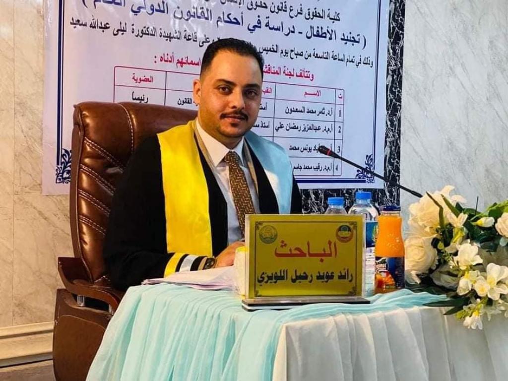 ناقشت كلية الحقوق في جامعة الموصل رسالة ماجستير عن تجنيد الاطفال- دراسة في احكام القانون الدولي العام، يوم الخميس الموافق 10 كانون الاول 2020 .