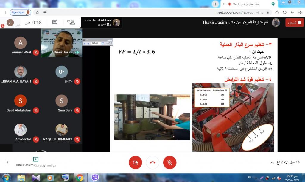 ناقشت كلية الزراعة والغابات في جامعة الموصل رسالة ماجستير بعنوان(دراسة استقرارية حركة الفجاجات الزاحفة ومدى تاثيرها في بعض مؤشرات الاداء الحقلي لزراعة الذرة الصفراء) ، عبر الفضاء الالكتروني، يوم الخميس الموافق 27 آب 2020، بحضور السيد عميد الكلية الدكتور محمد يونس العلاف .