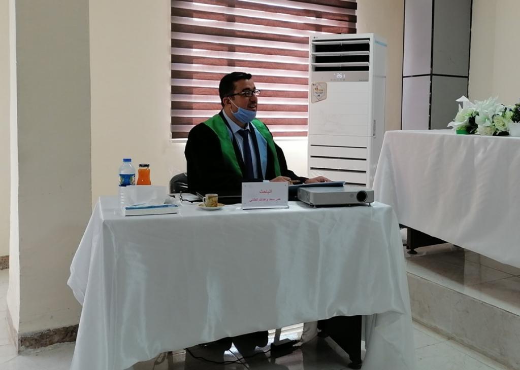 تراس لجنة المناقشة الاستاذ الدكتور موفق يحيى حمدون وعضوية كل من (أ.م.د مزهر كاظم كعيبر، أ.م.د. خالد حساني سلطان، ا.د. مثنى احمد محمد الطيب / عضوا ومشرفا).