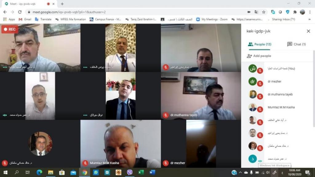ترأس لجنة المناقشة الاستاذ الدكتور مثنى احمد محمد الطيب وعضوية كل من (أ.م.د عمر ضياء محمد، م.د. ممتاز متي منصور، أ.م.د مزهر كاظم كعيبر / عضوا ومشرفا).