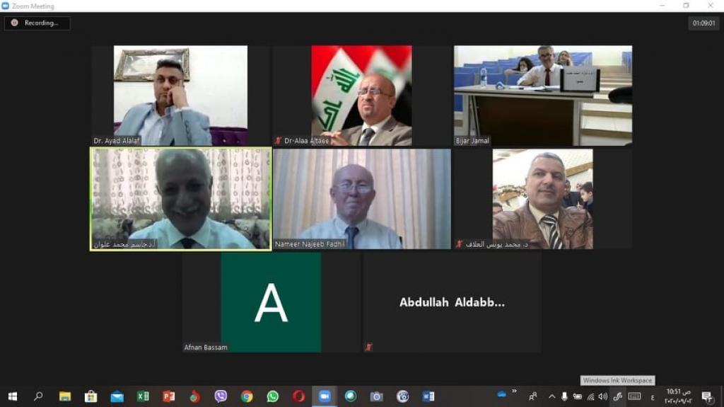 ناقشت كلية الزراعة والغابات في جامعة الموصل رسالة ماجستير عن تأثير الكبريت والنتروجين وحامض الهيوميك في نمو وحاصل اشجار الزيتون صنف خستاوي، عبر الفضاء الالكتروني ، يوم الاربعاء الموافق 2 ايلول 2020 ، بحضور السيد عميد الكلية الدكتور محمد يونس العلاف.
