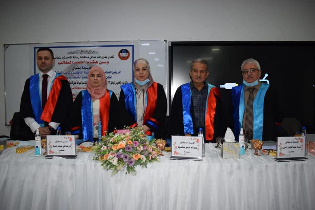 ترأس لجنة المناقشة الاستاذ الدكتور عصام حمو محمود وعضوية كل من الاستاذ الدكتور عماد عبدالجبار والدكتور فواز عبدالغني مصطفى والاستاذ المساعد الدكتور زينة عبدالمنعم عبدالمجيد /عضوا و مشرفاً.