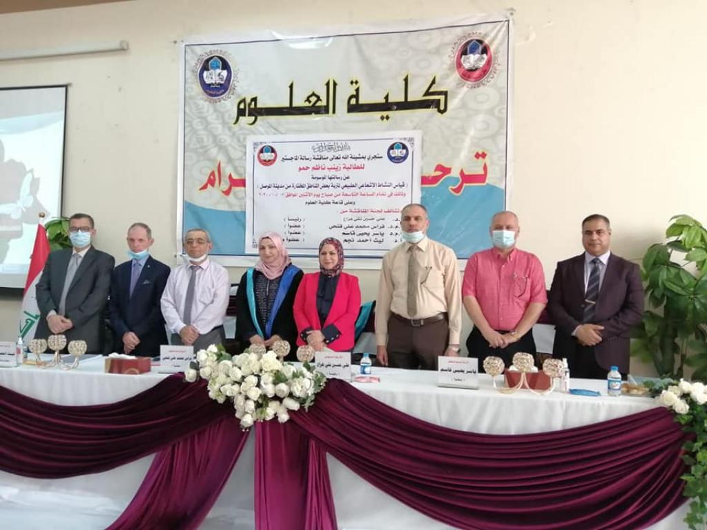 ناقشت كلية العلوم في جامعة الموصل رسالة الماجستير والموسومة ( قياس النشاط الإشعاعي الطبيعي لتربة بعض المناطق المختارة من مدينة الموصل) ، يوم الاثنين الموافق 12 تشرين الاول 2020.