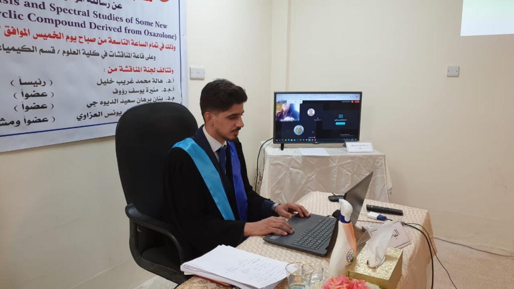 ناقشت كلية العلوم في جامعة الموصل ، رسالة ماجستير عن ” تحضير ودراسة طيفية لعدد من المركبات الحلقية غير المتجانسة الجديدة المشتقة من الأوكسازولون ” ، يوم الخميس الموافق 3 ايلول 2020، بحضور السيدة عميد كلية العلوم الأستاذ المساعد الدكتورة هيام عادل إبراهيم الطائي .