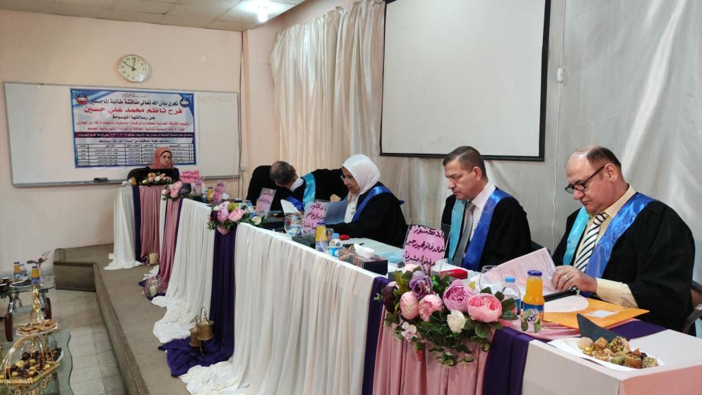 ترأس لجنة المناقشة الاستاذ الدكتور ليث احمد نجم عبد الله وعضوية كلاً من الاستاذ المساعد الدكتور هيثم عبد الحميد احمد عثمان والاستاذ المساعد الدكتورة سهام صباح عبد الله غانم من جامعة النهرين وبإشراف وعضوية كلاً من الاستاذ المساعد الدكتور فراس محمد علي فتحي والمدرس الدكتور خالد غانم مجيد من جامعة نينوى .