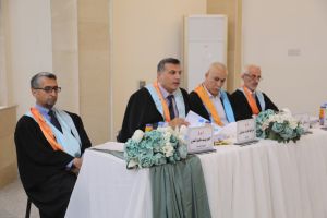 ترأس لجنة المناقشة الأستاذ الدكتور تركي حسن علي من جامعة نوروز وعضوية كلا من الأستاذ المساعد الدكتور عمر حازم خروفة والمدرس الدكتور مزاحم محمد مصطفى وبإشراف وعضوية الاستاذ المساعد الدكتور احمد يوسف العمري.