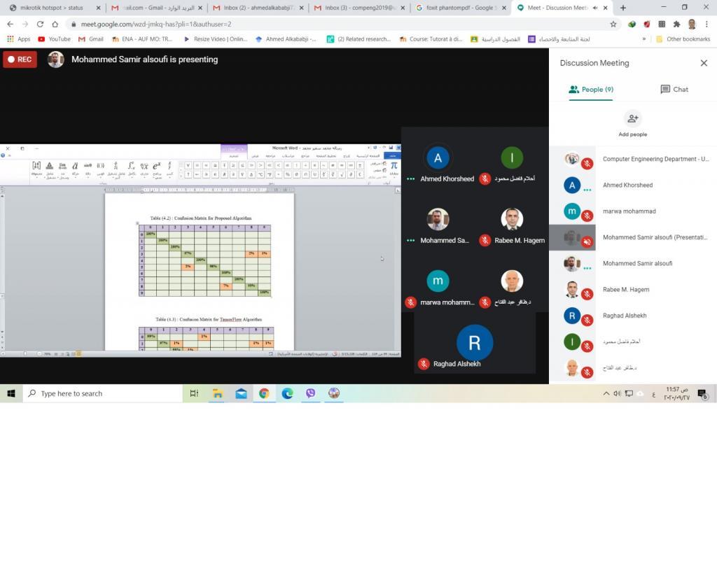 ناقشت كلية الهندسة في جامعة الموصل رسالة ماجستير عن ( تصميم وتنفيذ نموذج أولي لمنظومة قراءة آلية لمقاييس الطاقة الكهربائية للمستهلكين ) ، عبرمنصة كوكل مييت.