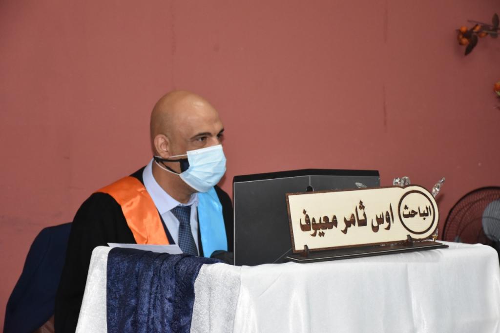 تراس لجنة المناقشة الاستاذ الدكتور خالد خليل محمد وعضوية كل من الاستاذ المساعد الدكتور ضياء محمد علي والدكتور محمد يونس ذنون، وبإشراف كل من الاستاذ الدكتور خليل حسن سيد مرعي والاستاذ المساعد الدكتور يسار عز الدين محمد علي .