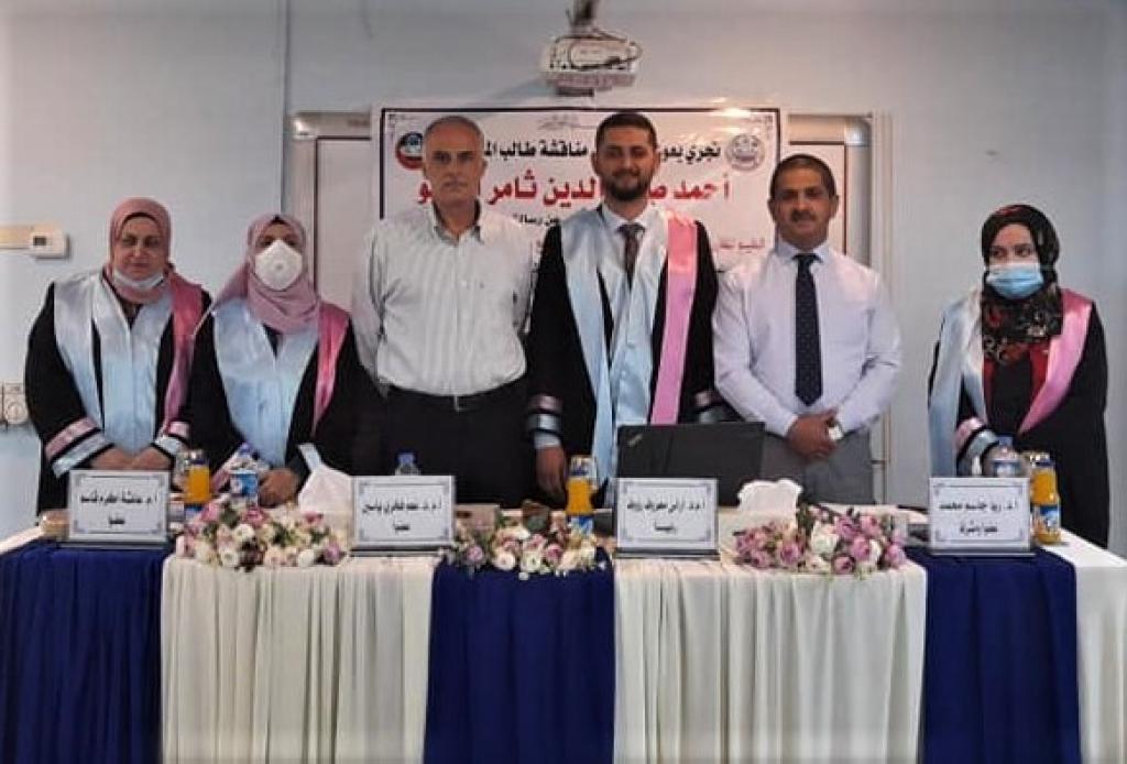 ترأس لجنة المناقشة الأستاذ المساعد الدكتور آراس معروف رؤوف / جامعة السليمانية وبعضوية كلاً من الأستاذ المساعد الدكتورة نعم فخري ياسين والاستاذ المساعد عائشة اكرم قاسم وبأشراف وعضوية الأستاذ الدكتورة ريا جاسم النعيمي.