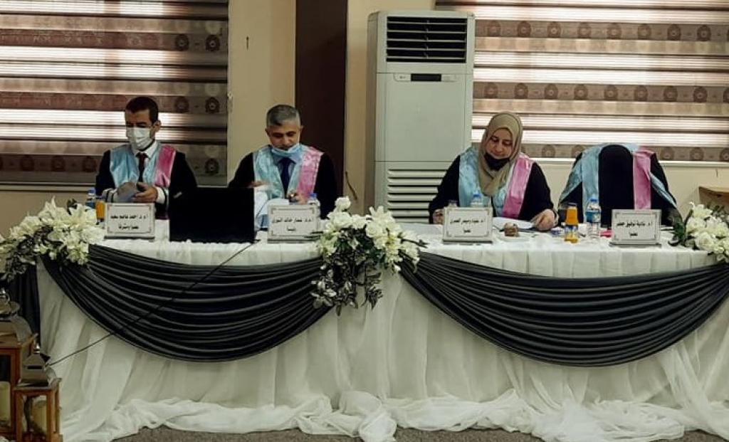ترأس لجنة المناقشة الأستاذ المساعد الدكتور عمار خالد النوري وبعضوية كلاً من الأستاذ المساعد علياء وميض العمري والأستاذ المساعد نادية توفيق جعفر/جامعة دهوك وبأشراف وعضوية الأستاذ المساعد الدكتور احمد عاصم سعيد.