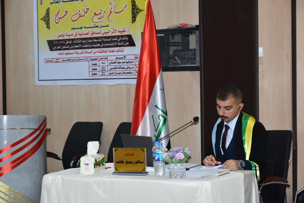 ناقشت كلية علوم البيئة وتقاناتها في جامعة الموصل صباح اليوم الموافق 28 تموز2020 رسالة ماجستير عن تقييم الأثر البيئي للمناطق الصناعية في مدينة الموصل.