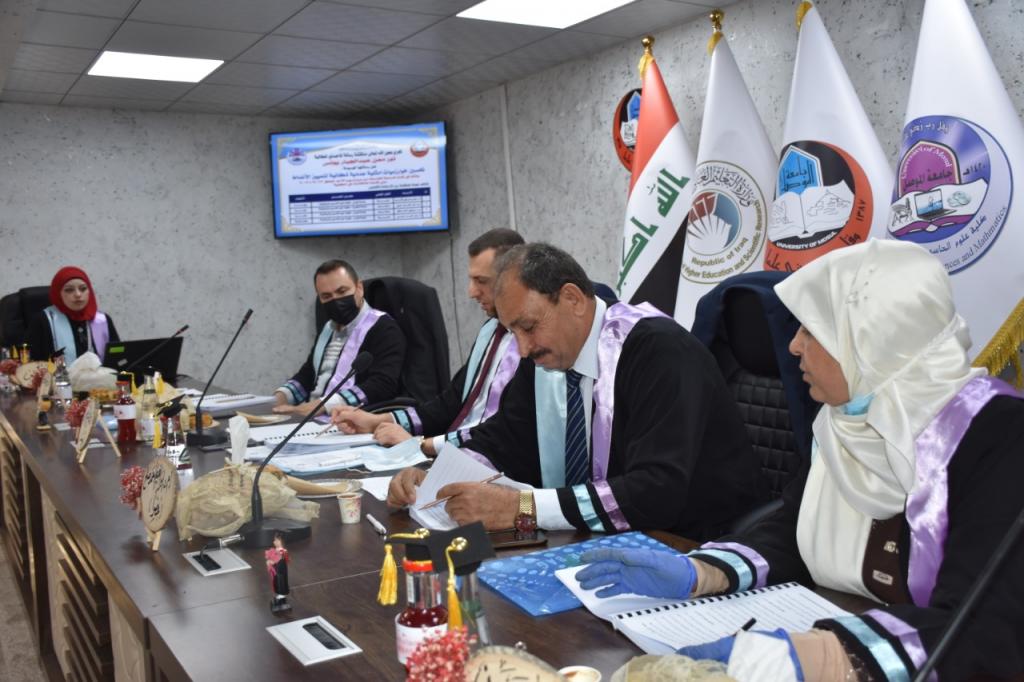 ناقشت كلية علوم الحاسوب والرياضيات رسالة ماجستير عن تحسين خوارزميات أمثلية عددية ذكائية لتمييز الانماط، اليوم الاحد 12ايلول 2021، في قاعة المناقشات بالكلية حضر جانباً منها السيد مساعد رئيس الجامعة للشؤون العلمية الاستاذ الدكتور منير سالم طه والسيدة عميد الكلية الاستاذ الدكتور ضحى بشير عبد الله .
