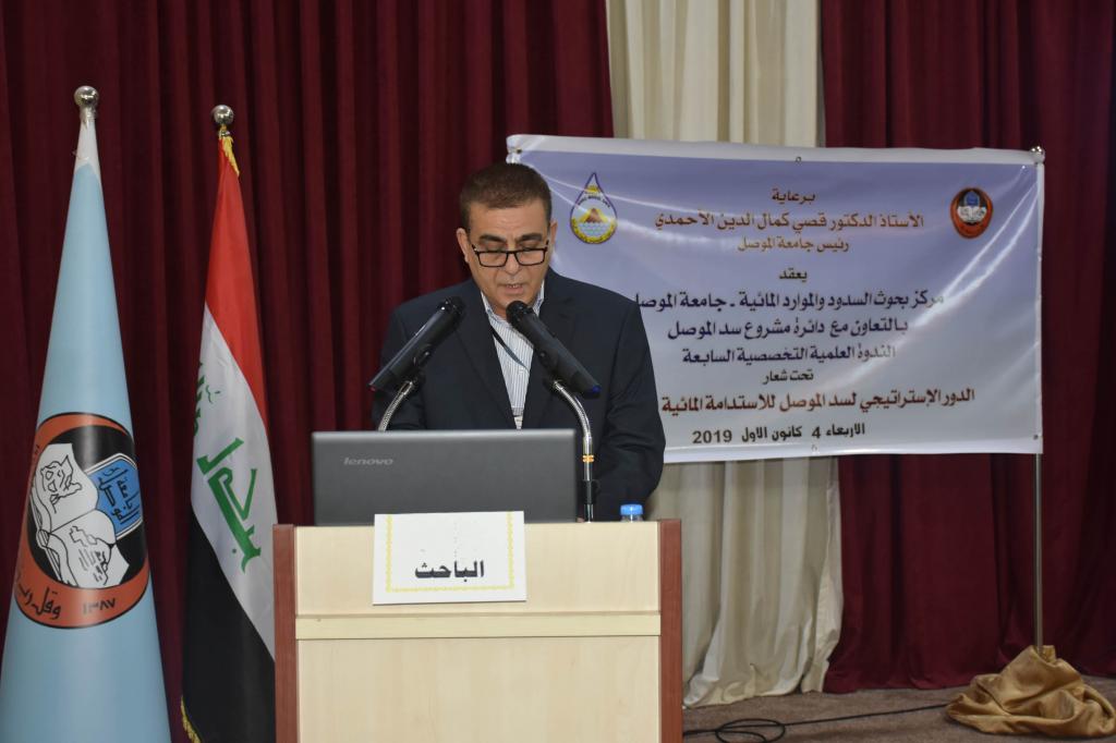 اقام مركز بحوث السدود والموارد المائية في جامعة الموصل وبالتعاون مع دائرة مشروع سد الموصل الندوة العلمية التخصصية السابعة تحت شعار (الدور الاستراتيجي لسد الموصل للاستدامة المائية في العراق) برعاية الاستاذ الدكتور قصي كمال الدين الاحمدي رئيس جامعة الموصل وحضور الدكتور احمد طارق ع/مساعد رئيس الجامعة للشؤون الادارية ممثلاً عن سيادته صباح يوم الاربعاء الموافق 4 كانون الاول 2019 وفي قاعة المنتدى العلمي والادبي للجامعة حضرها الخبير المهندس رياض عزالدين مدير دائرة مشروع سد الموصل وممثلاً عن مديرية زراعة نينوى ومديرية الموارد المائية في نينوى .. ومدير الدفاع المدني في المحافظة . ضمت الندوة جلستين علميتين , ركزتا على دور سد الموصل في الاستدامة المائية ودرء خطر الفيضان وتأثيره على الانتاج الزراعي وعلى معطيات التحسس النائي في التحليل المورفوديناميكي لحوض السد وتأثير التغيرات المناخية على سلامته وتشغيل خزانات السد لتلبية المتطلبات الاروائية وكانت هناك جلسة خصصت للمقترحات والتوصيات التي خرجت بها الندوة .
