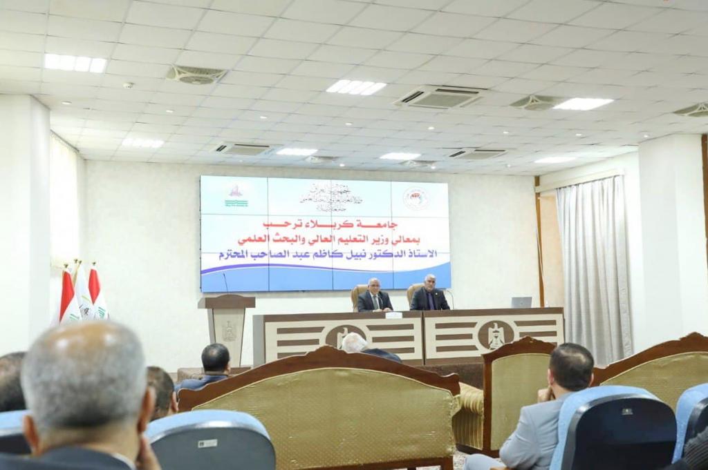 أكد وزير التعليم العالي والبحث العلمي الأستاذ الدكتور نبيل كاظم عبد الصاحب ان التنمية الشاملة تتطلب مواكبة منهجية مستمرة للتقدم العلمي وتوظيفا مستداما للتقانات الحديثة ونتائج البحوث العلمية.وأوضح خلال اجتماعه مع مجلس جامعة كربلاء أن وزارة التعليم العالي والبحث العلمي وجامعاتها تبذل جهودا حثيثة للارتقاء بأداء مؤسساتها وتطوير البرامج الأكاديمية وتحسين منظومة التعليم الجامعي على وفق الأهداف المؤشرة في سياسة التعليم العالي وفي ضوء ما يحقق ويخدم تطلعات المجتمع العراقي.وأضاف أن الجامعات العراقية تسعى الى تحسين أدائها المؤسسي وصياغة أثر إيجابي في المساحات النوعية للمخرجات مشيرا الى أن هذا التوجه دفع باتجاه تصميم برامج تشتمل على تطوير عمليات التخطيط والتنظيم على وفق مقاييس ومعايير ومؤشرات علمية تقويمية.وتابع أن جودة المخرجات تمثل هدفا هاما ومرتكزا أساسيا لدى الجامعات على الصعيد التنافسي الذي يتطلب توفير ومراعاة كل المستلزمات التنظيمية ذات المستوى العالي للحصول على مراكز تنافسية في التصنيفات العالمية.