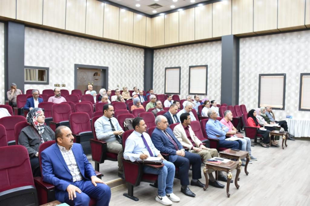 وبحضور السادة معاوني الشؤون العلمية لعمداء الكليات ومدراء المراكز والاقسام المهتمة بالزمالة البحثية،