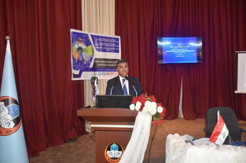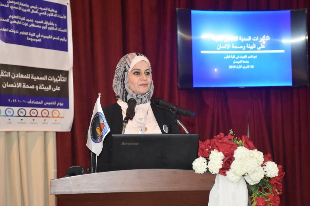 برعاية الاستاذ الدكتور قصي كمال الدين الاحمدي رئيس جامعة الموصل وبحضور الاستاذ الدكتور اكرم محمود البدو مساعد رئيس الجامعة للشؤون الادارية ممثلاً عن السيد رئيس الجامعة , اقام قسم الكيمياء في كلية العلوم ندوته العلمية الموسومة (التأثيرات السمية للمعادن الثقيلة على البيئة وصحة الانسان) يوم الخميس الموافق 10 تشرين الاول 2019 وفي قاعة المنتدى العلمي والادبي للجامعة استهلت الندوة بقراءة سورة الفاتحة على ارواح شهداء العراق تلاها كلمة للسيد عميد كلية العلوم واخرى للسيدة رئيسة قسم الكيمياء .. القي فيها 4 محاضرات هي : تأثير العناصر الثقيلة على صحة الانسان , المعادن الثقيلة وتأثيراتها البيئية , سمية المعادن الثقيلة وتأثيرها على صحة جسم الانسان , المعادن الثقيلة ومعقداتها , مخاطرها على صحة الانسان والبيئة .يجدر بالذكر ان الهدف من اقامة الندوة هو للتعريف عن تأثيرها والوقاية من التعرض لتراكيز عالية منها حيث كلما زاد التركيز زادت السمية لتراكمها داخل الجسم سواء في الكبد او العضلات او الاعضاء الداخلية او الاعصاب , مما يزيد احتمالية تعرض الانسان للضرر دون علمه بالسبب المباشر له . وفي ختام الندوة القيت التوصيات ووزعت الشهادات على المشاركين فيها .