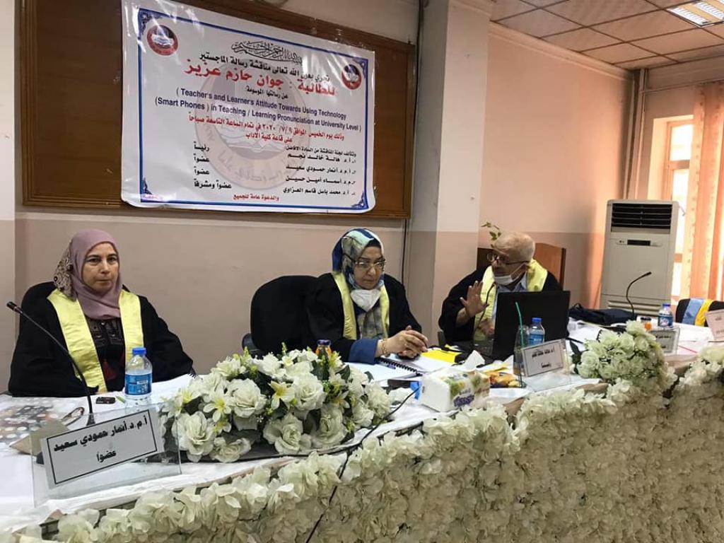 “Teachers and Learners Attitude Towards Using (Smart Phones) in Teaching/Learning Pronunciation at University Level”جرت في قسم اللغة الإنكليزية بكلية الآداب مناقشة رسالة الماجستير والموسومة