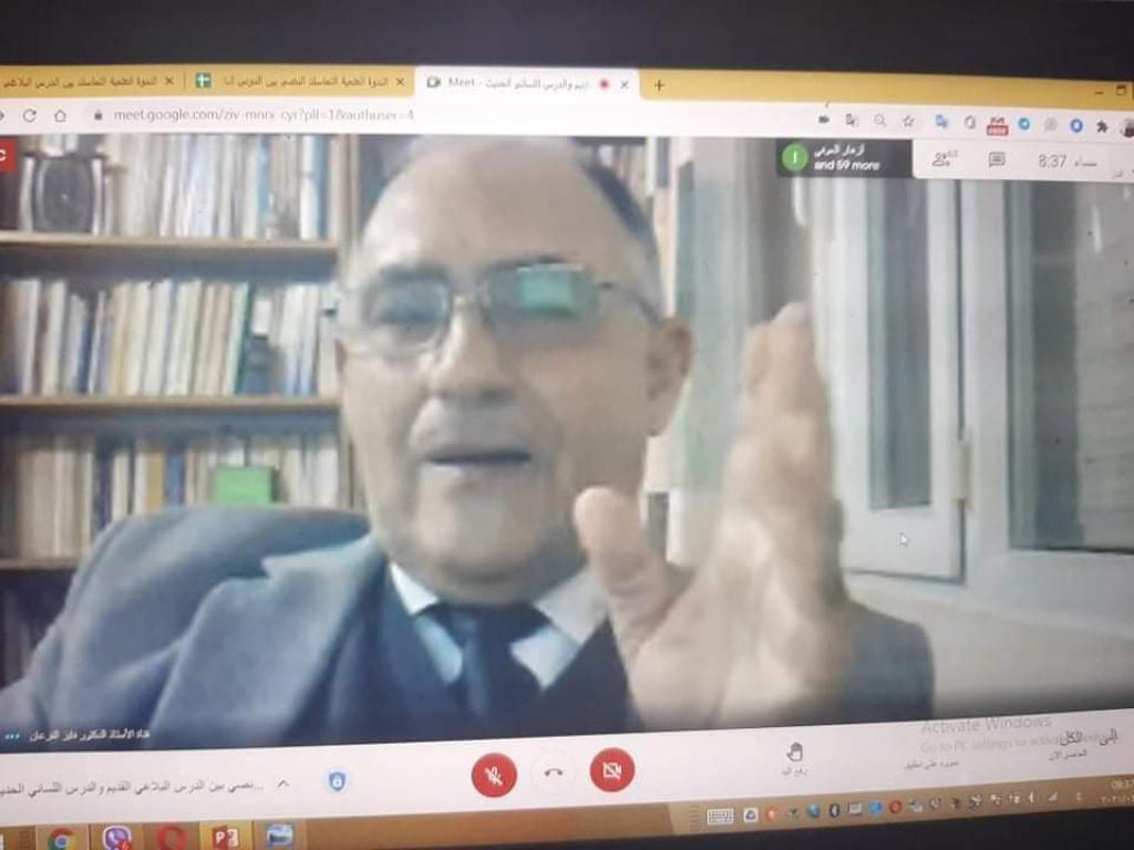كلية الآداب تقيم ندوة علمية الكترونية عن التماسك النصي بين الدرس البلاغي القديم واللساني الحديث بمشاركة علماء لغة عرب