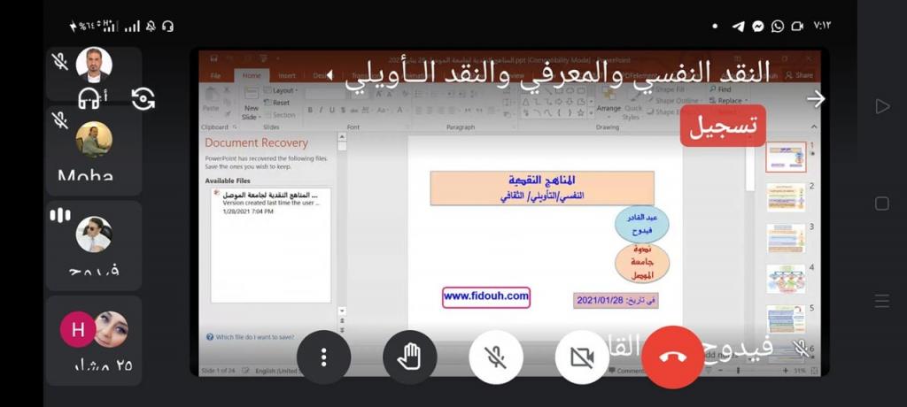 كلية الآداب تقيم ورشة عمل الكترونية عن مرجعيات وأصول النقد النفسي و المعرفي والتأويلي ومفاهيمها