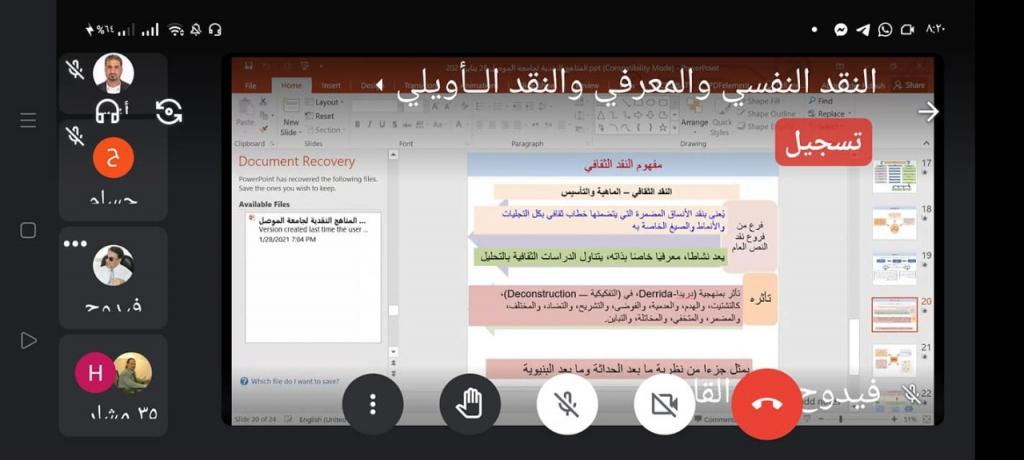أقامت كلية الآداب في جامعة الموصل ، ورشة عمل ألكترونية بعنوان ((النقد النفسي والنقد المعرفي والنقد التأويلي المرجعيات الاصول المفهوم)) ، يوم الخميس الموافق 28/كانون الثاني /2021، حضرها طلبة الدراسات العليا وعدد من اساتذة الكلية والجامعة ومن الجامعات العراقية .