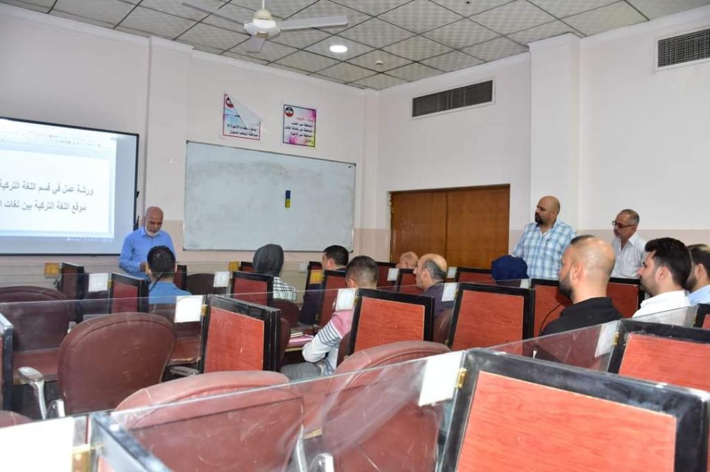 برعاية رئيس جامعة الموصل الأستاذ الدكتور قصي كمال الدين الأحمدي أقام قسم اللغة التركية بكلية الآداب جامعة الموصل يوم الأربعاء ٢٢ حزيران ٢٠٢٢ ورشة عمل عن ( موقع اللغة التركية بين لغات العالم ) حضر جانباً منها عميد الكلية الأستاذ المساعد الدكتور محمد علي عفين وعدد من اساتذتها.تضمن جدول أعمال الورشة مجموعة دراسات قدمها تدريسيو القسم.أقيمت الورشة في قاعة ( الفيديوكونفرنس ) في قسم اللغة التركية والتي نضمت من قبل اللجنة التحضيرية في القسموخلصت الورشة إلى أن اللغة التركية تعتبر من عائلة اللغات التي نشأت في منطقة جبال آلتاي شرق آسيا ، ويعود تاريخ نشأتها لـ ( ٥٠٠٠ ) أو ( ٨٠٠٠ ) سنة لأن العلماء إختلفوا في هذا ، وقد جرى عليها عدة تغييرات ، حيث كان الناس في عهد الدولة العثمانية يتكلمون باللغة التركية العثمانية ( اللغة التركية القديمة ) ، التي تتكون من إجتماع عدة لغات تكتب بالأحرف العربية ، وهي ( التركية القديمة ، العربية ، الفارسية ) ، وهذا بسبب دخول الأتراك إلى الإسلام وإحتكاكهم بالمسلمين .وبعد قيام الجمهورية التركية الحديثة في عام ١٩٢٣م قام رئيسها مصطفى كمال أتاتورك بتأسيس جمعية اللغة التركية ، وجمع فيها المؤرخين وعلماء اللغة ، بهدف تنقيح اللغة من الكلمات العربية والفارسية وإطلاق اللغة التركية الحديثة لإسترجاع أكبر قدر ممكن من كلمات اللغة التركية القديمة، وإستبدلوا الأحرف العربية بالأحرف اللاتينية ..