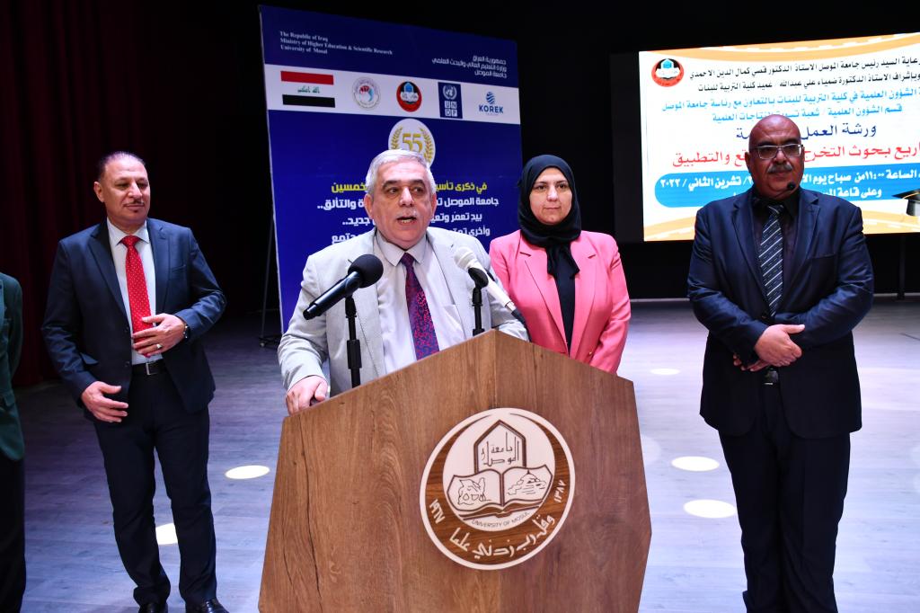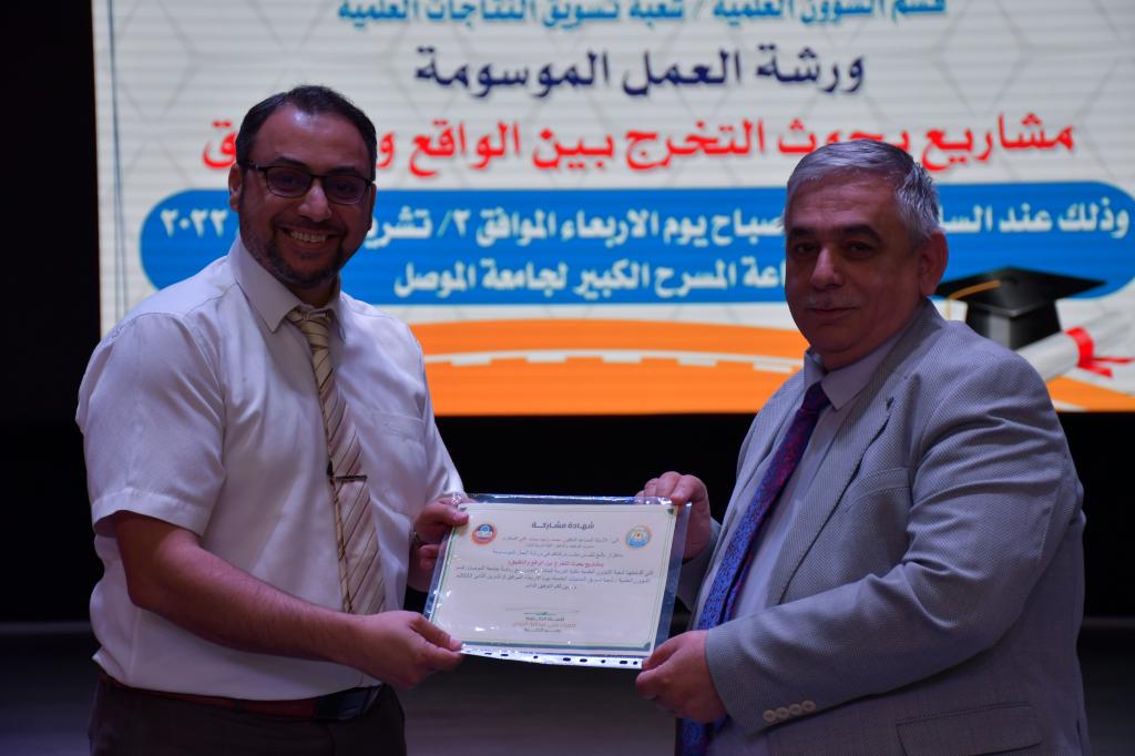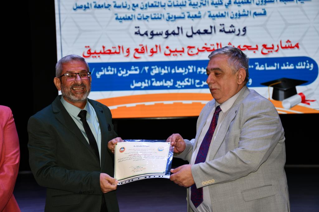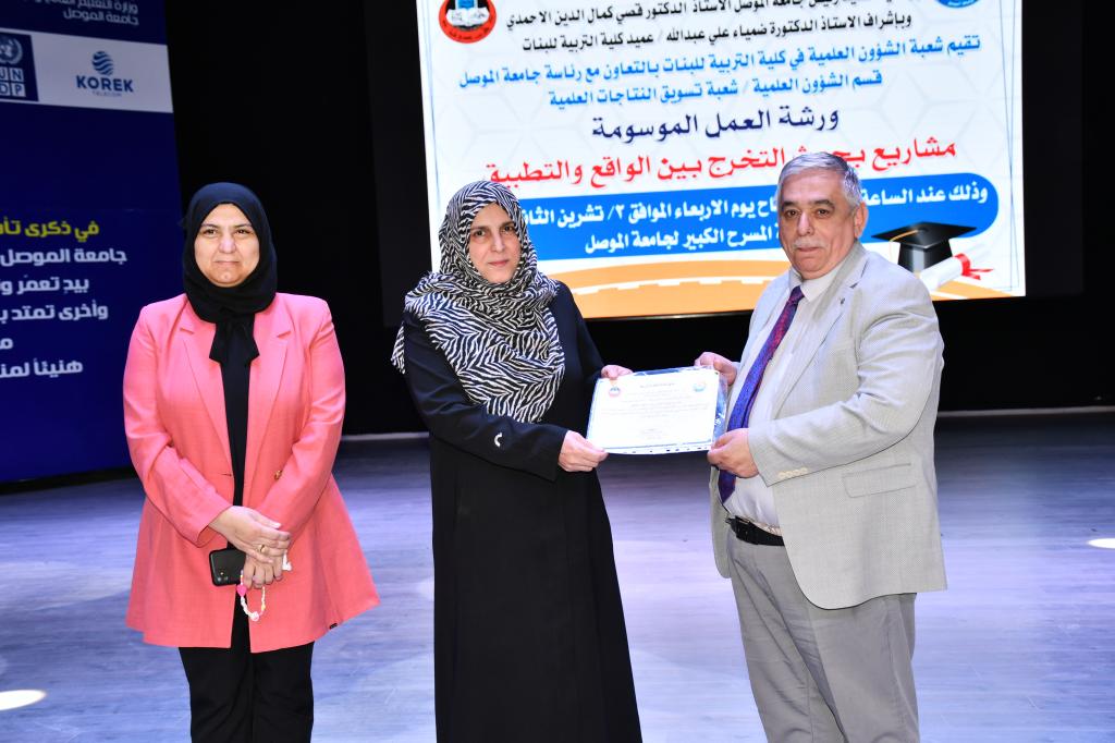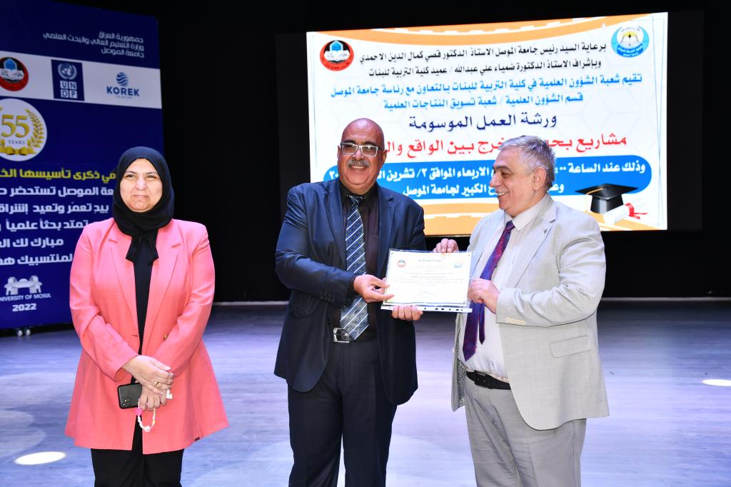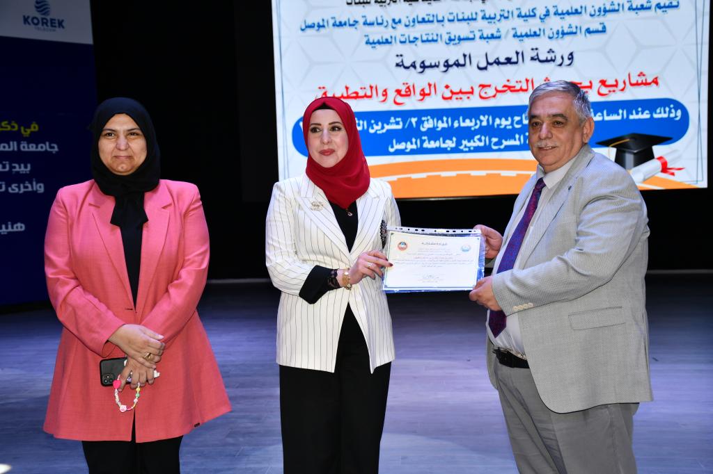 أقامت كلية التربية للبنات أعمال ورشة العمل الموسومة ” مشاريع بحوث التخرج بين الواقع والتطبيق” اليوم الأربعاء ٢ تشرين الثاني ٢٠٢٢، في مسرح الجامعة الكبير.تعاونت فيها شعبة الشؤون العلمية في الكلية مع قسم الشؤون العلمية /شعبة تسويق للنتاجات العلمية برئاسة الجامعة،حضرها الاستاذ الدكتور منير سالم طه مساعد رئيس الجامعة للشؤون العلمية وعميد الكلية وعدد من التدريسيين،نوقشت في محاورها اهم الاسس التي انتهجتها وزارة التعليم العالي والبحث العلمي في استحداثها منصة البحوث التطبيقية لحث الطلبة على الإرتقاء بواقع بحوث تخرجهم وتوجيهها الوجهة الصحيحة للإفادة منها من خلال تسويقها وتبيان خدماتها للوزارات والمؤسسات المعنية.
