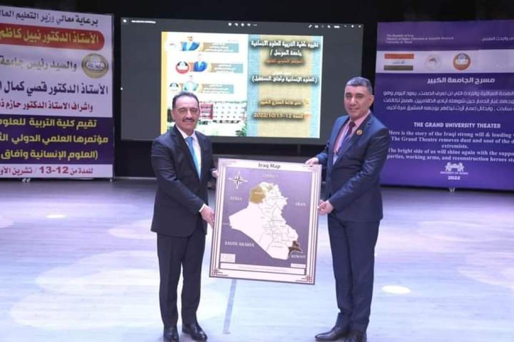 برعاية معالي وزير التعليم العالي والبحث العلمي الاستاذ الدكتور نبيل كاظم عبد الصاحب وبإشراف وحضور الاستاذ الدكتور قصي كمال الدين الاحمدي رئيس جامعة الموصل وبمتابعة الاستاذ الدكتور حازم ذنون اسماعيل عميد كلية التربية للعلوم الانسانية ، أقامت الكلية مؤتمرها الدولي الثاني تحت شعار العلوم الإنسانية وآفاق المستقبل، يوم الاربعاء 12 تشرين الاول 2022. ، في قاعة مسرح الجامعة الكبير، حضره الاستاذ الدكتور منير سالم طه مساعد رئيس الجامعة للشؤون العلمية وعدد من السادة اعضاء مجلس الجامعة وتدريسيي وطلبة الكلية وشخصيات محلية موصلية .تناولت ابحاث المؤتمر التي بلغت ٥٨ بحثاً علميا للتخصصات التربوية والنفسية واللغات والادب العربي والجغرافيا والتاريخ وعلوم القرآن والتربية الإسلامية.هدف المؤتمر الى بيان أهمية البحث العلمي للتخصصات الإنسانية بوصفها محور الحياة وأسس سيرها بشكل فاعل وناجح ومثمر للإرتقاء بها.تستمر اعمال المؤتمر بجلساته المختلفة يومي 12-13 تشربن الاول 2022 في قاعات الكلية .