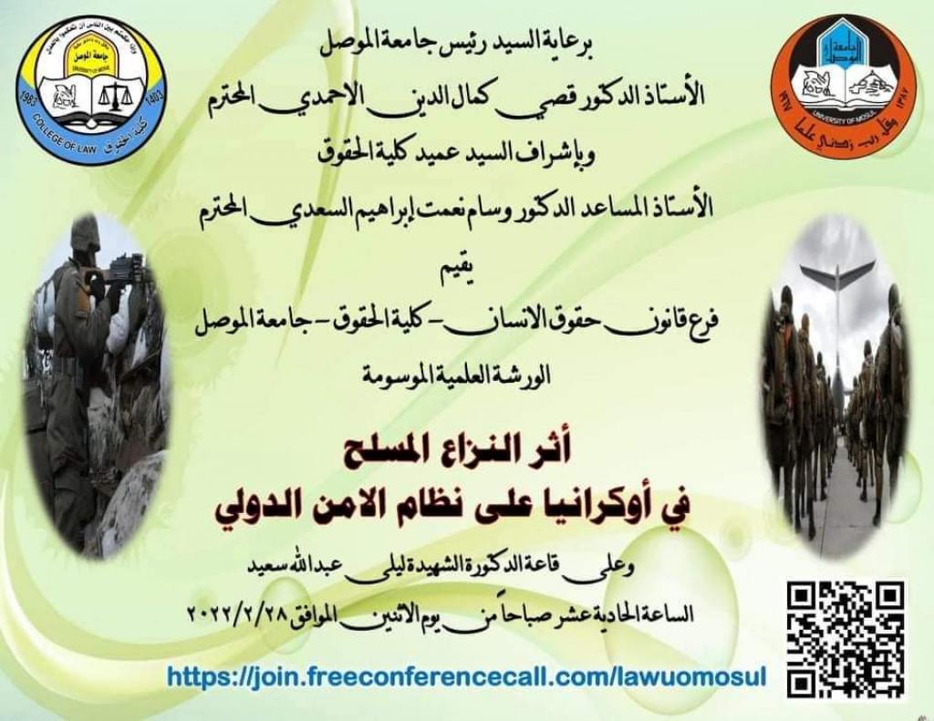 كلية الحقوق تبحث في ورشة علمية اثر النزاع المسلح في اوكرانيا على نظام الامن الدولي