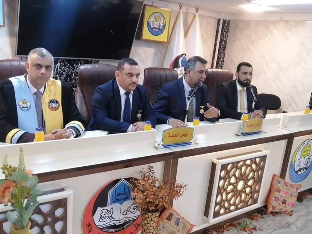 برعاية الاستاذ الدكتور قصي كمال الدين الاحمدي رئيس جامعة الموصل ،اقامت كلية الحقوق بجامعة الموصل مؤتمرها الطلابي العلمي الموسوم (دور الطالب الجامعي في تطوير البحث العلمي) ، يوم الخميس ٢٦ أيار ٢٠٢٢تضمنت جلسة افتتاحه برنامجاً ابتدأ بعزف النشيد الوطني لجمهورية العراق وقراءة ما تيسر آي من الذكر الحكيم ثم القى الاستاذ المساعد الدكتور وسام نعمت ابراهيم السعدي عميد الكلية كلمة المؤتمر ، مثمنا دور الطلبة في تقديمهم لبحوث علمية متميزة في مختلف فروع القانون ومعارفه ، ثم ابتدأت اعمال الجلسة العلمية الأولى والتي شهدت تقديم عدد من البحوث العلمية القانونية التي تناولت تقنيات الذكاء الاصطناعي وتطبيقاته في القانون الدولي العام وتصرف الفضولي والحماية الدولية للمناخ وزواج القاصرات والعقد الالكتروني وولاية المرأة في الزواج وغلق الدعوى الجزائية .أما الجلسة العلمية الثانية فقد شهدت تقديم عدد من البحوث العلمية القانونية التي تناولت التنمر بين الاباحة والتجريم ومجلس ادارة الشركة المساهمة الخاصة والدعوى الحادثة ودور الام في نقل الجنسية للابناء وجنسبة الشخص المعنوي والدفوع الاجرائية في الدعوى المدنية ونظرية الظروف الطارئةثم ابتدأت اعمال الجلسة العلمية الثالثة والتي شهدت تقديم عدد من البحوث العلمية القانونية التي تناولت الاختصاص الرقابي للمحكمة الاتحادية العليا في العراق وعقد الاعتماد المستندي والاثراء بلا سبب ودور مجلس حقوق الانسان في حماية وتطوير حقوق الانسان ومفهوم الامن الانساني ودوره في تعزيز حقوق الانسان ودور اليمين المتممة للاثبات المدني والتسوية الصلحية الضريبية في قانون ضريبة الدخل العراقي .وختاما ابتدأت اعمال الجلسة العلمية الرابعة والتي شهدت تقديم عدد من البحوث العلمية القانونية التي تناولت حكم تصرفات المشتري في المدفوع وحق المتهم في الصمت والجراحة التجميلية ومبدأ حظر استخدام القوة وفق احكام القانون الدولي ومكافحة الارهاب ونظام التمثيل النسبي في الانتخابات واثره في احتساب الاصوات وتوزيعها على المقاعد النيابية وسلطة القاضي في الاثبات بالدليل الالكتروني ، ومن ثم تم اعلان البحوث الثلاثة الاولى .وقد خرج المؤتمر بعدد من التوصيات التي تم رفعها الى الجهات ذات العلاقة.