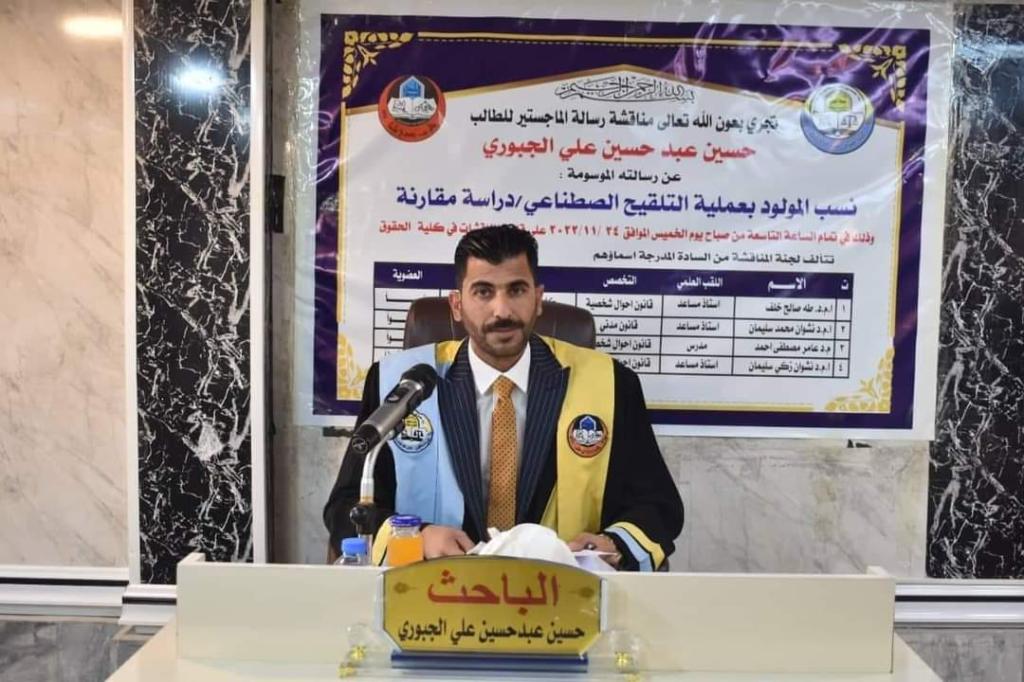 ناقشت كلية الحقوق بجامعة الموصل يوم الخميس 24 تشرين الثاني 2022 رسالة ماجستير عن نسب المولود بعملية التلقيح الاصطناعي/ دراسة مقارنة ,